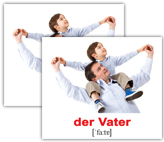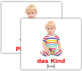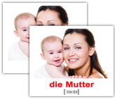 Набор содержит 20 двухсторонних карточек с изображениями членов семьи, с подписями на немецком и русском языках. Просмотр таких карточек позволяет ребёнку быстро усвоить тему «семья», запомнить, как пишутся слова, развивает у него интеллект и формирует фотографическую память.